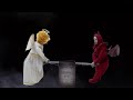 - Animated seesaw motion with angel and devil figures